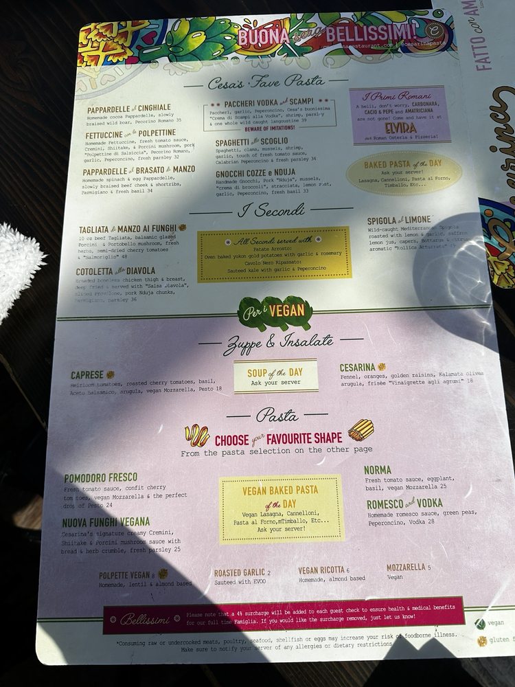 Homemade pasta sheets, deep-fried eggplants, vegan Pesto alla Genovese, Peperoncino, fresh tomato sauce, vegan provolone, vegan Mozzarella, vegan Parmigiano. ALLERGENS: NUT, SOY, GLUTEN