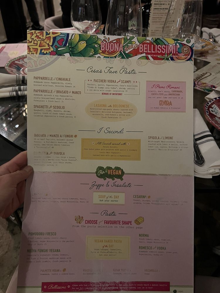 Hand-rolled egg-pasta sheets layered with Cesarina's delicious Bolognese, bechamel, mozzarella, oven-baked and served with fresh Parmigiano. ALLERGENS: RED MEAT, DAIRY, GLUTEN